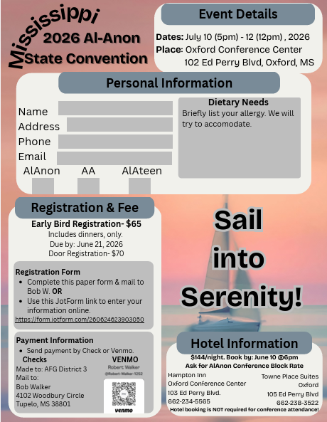 If you are hosting an event or know of any interesting Al-Anon events, please send the flyer