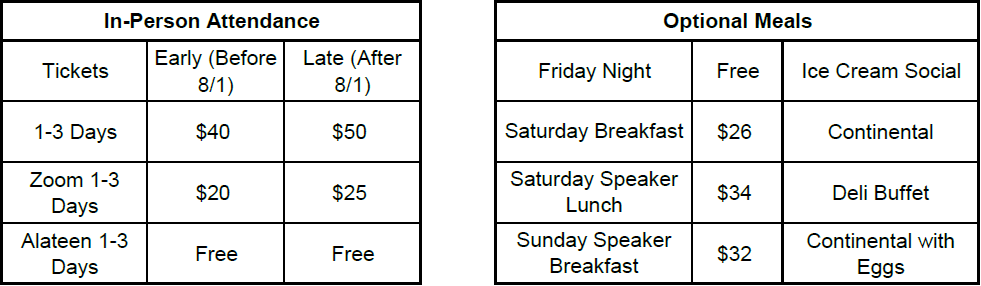 In-Person Early Bird Registration (until August 31st)